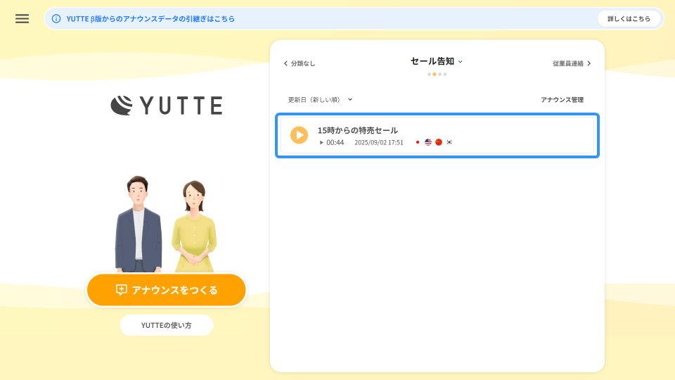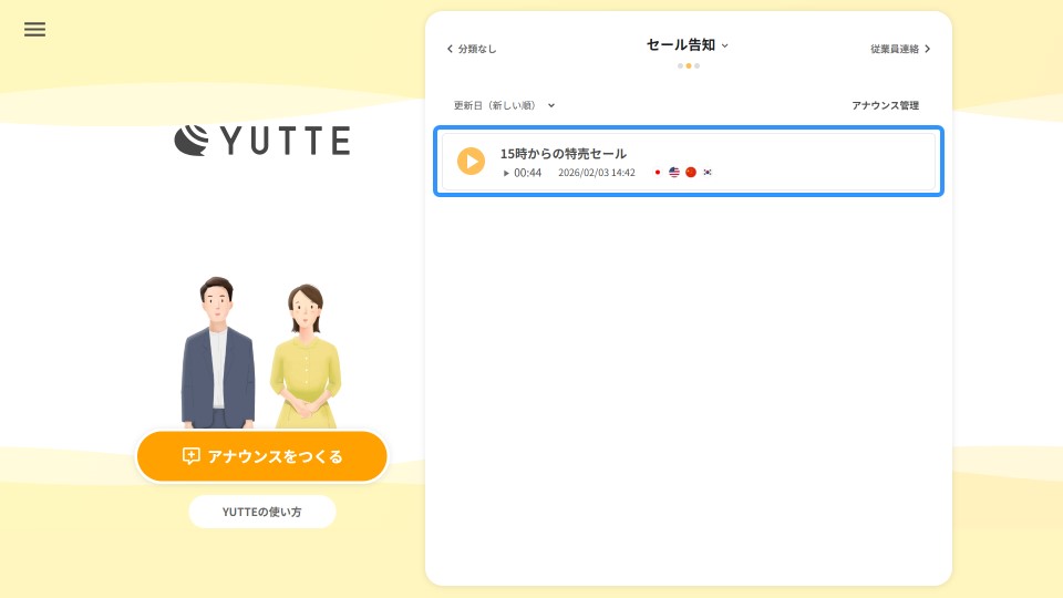 アナウンスのダウンロードはHOME画面またはアナウンス編集画面から行うことができます。ここではHOME画面からのダウンロードの手順を説明します。