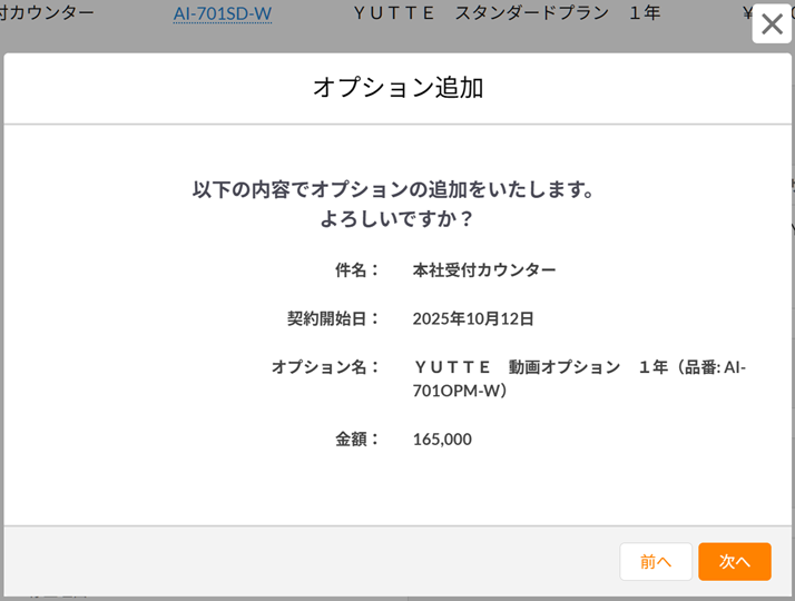 契約内容の詳細画面をひらくと、オプションが追加されていることを確認いただけます。