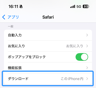 - iPhoneでは「Safariの設定」から保存先を「このiPhone内」に変更可能