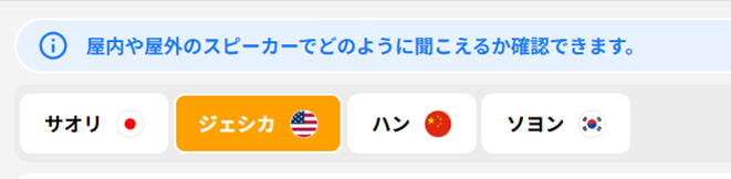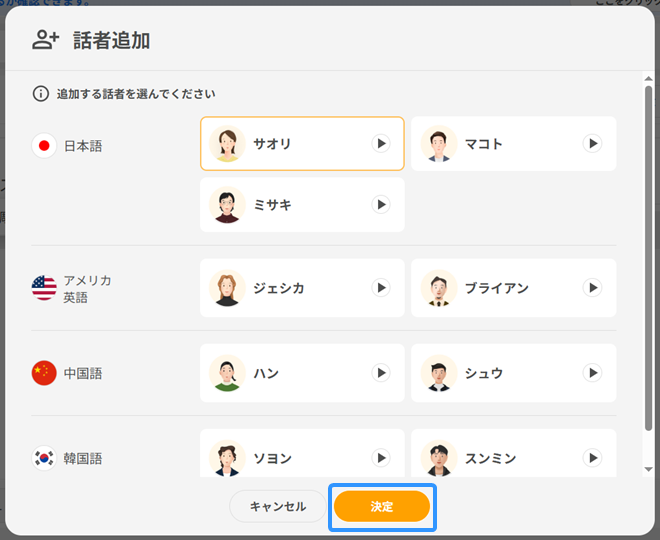 選択できる話者の一覧が表示されます。表示される話者は利用しているプランによって変わります。