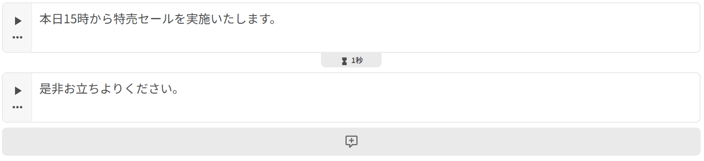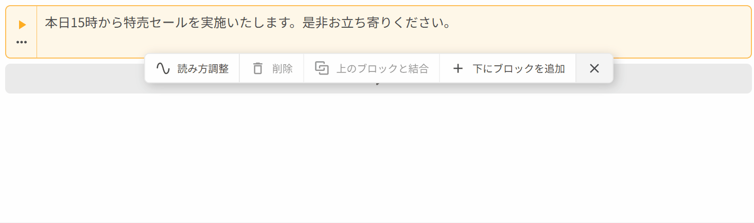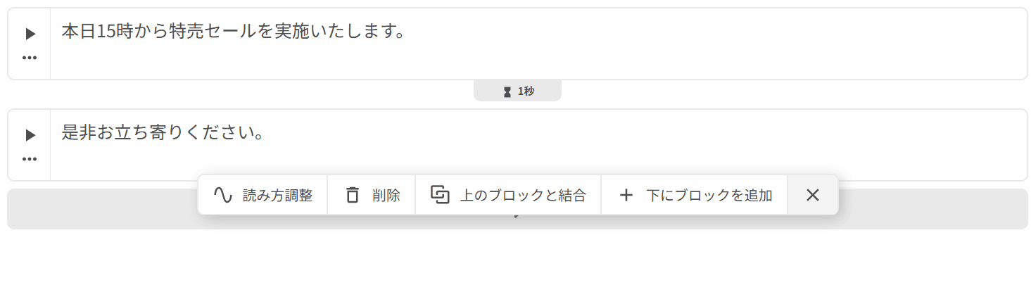 しかし、文章が長くなると読みにくくなったり、試聴の時間が長くなってしまうことがあります。そのようなときはブロックを分けることをおすすめします。