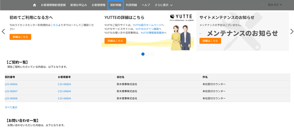 TOAライセンスセンターホーム画面より、契約明細をクリックしてください。
