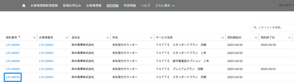 契約明細より、解約したい契約明細の番号をクリックしてください。