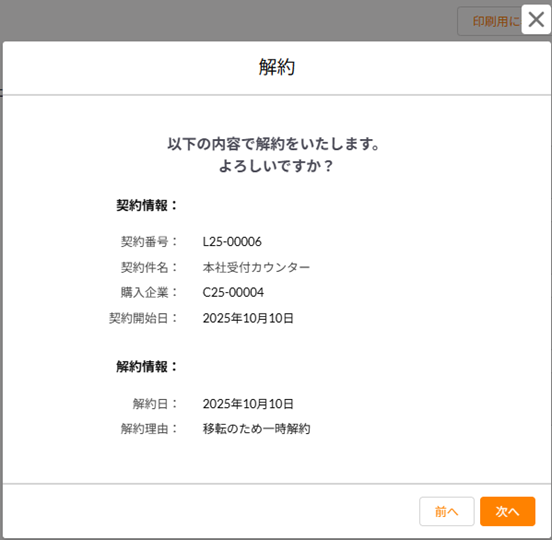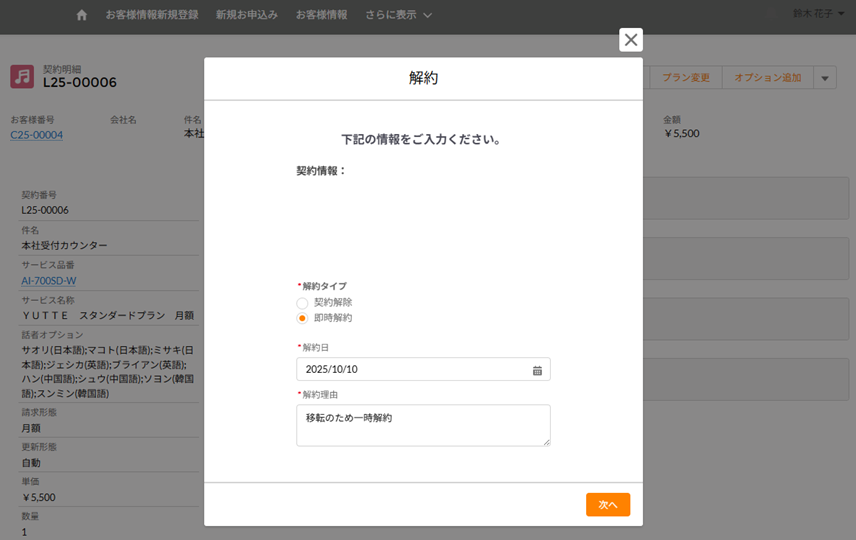 - 解約タイプ:「契約解除」または「即時解約」を選択します。