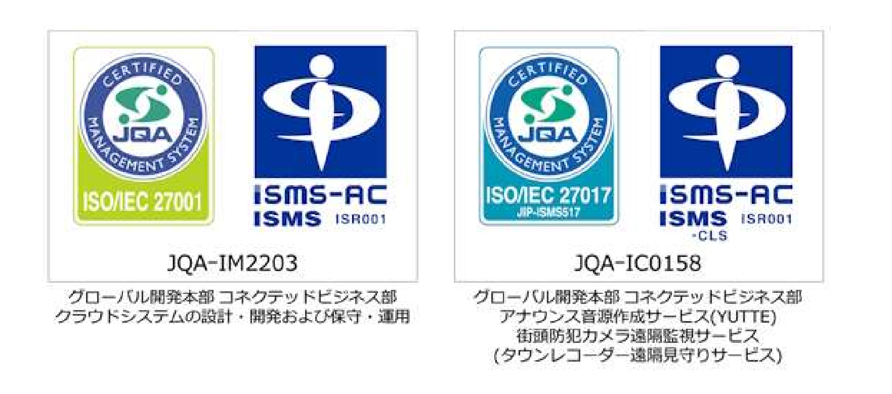 当社は、クラウドサービス開発部門において、情報セキュリティマネジメントシステム(ISMS)の国際規格「ISO/IEC 27001」の認証を取得いたしました。