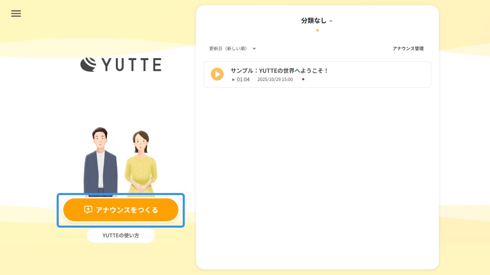 YUTTEの基本的な使い方を説明します。