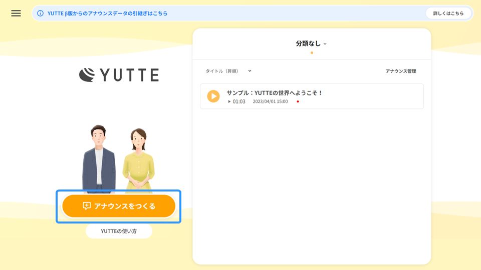 まずはHOME画面のアナウンスをつくるボタンを押してください。