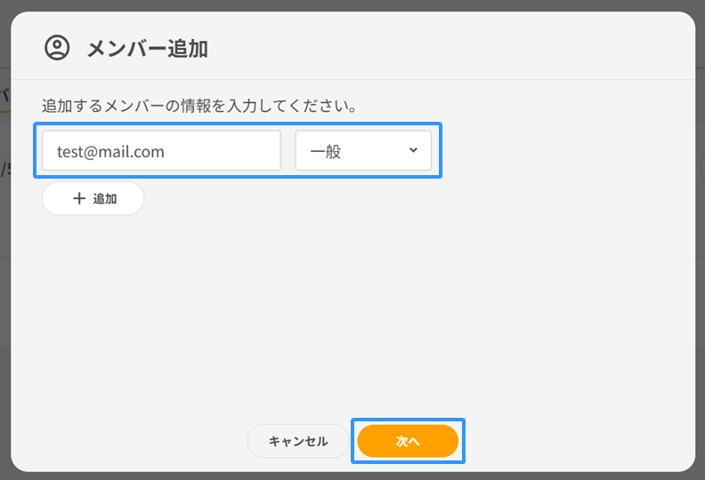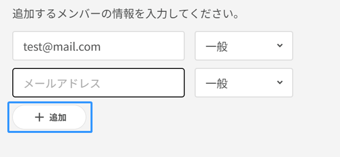 追加する人にアカウント内のメンバーの管理権限を付与するときは管理者を、付与しない場合は一般を選択してください。