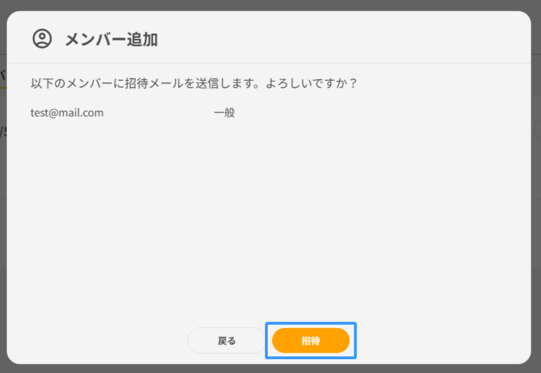 送信するメールアドレスに間違いが無ければ招待ボタンを押します。