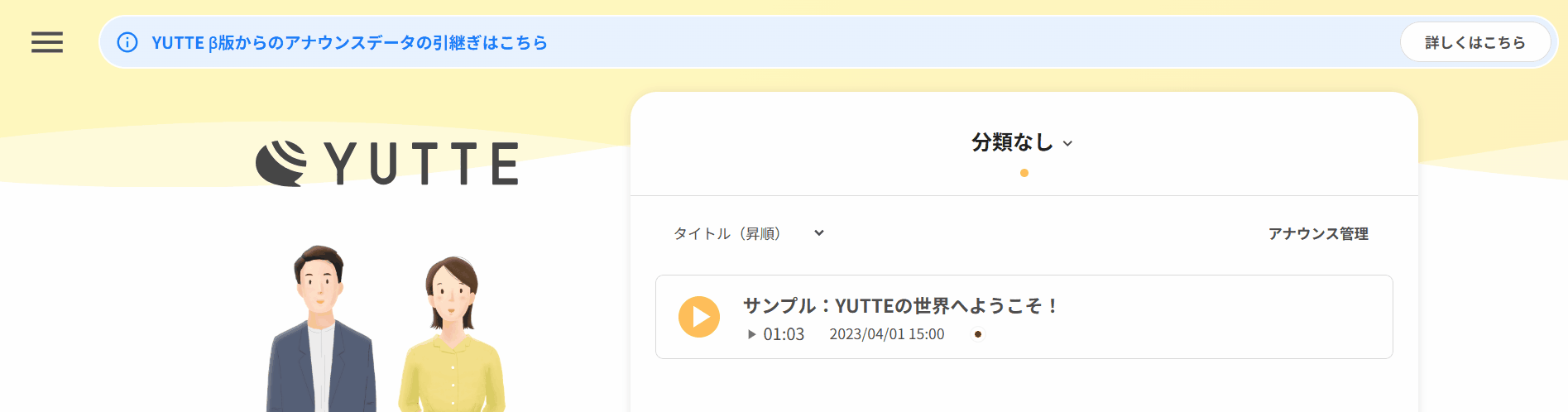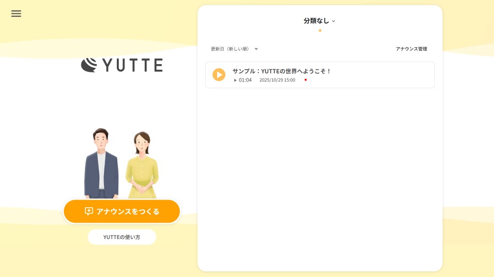 YUTTEのホーム画面が表示されたら、作業完了です。